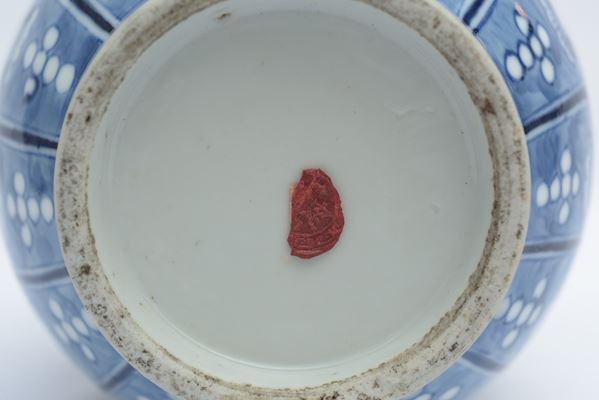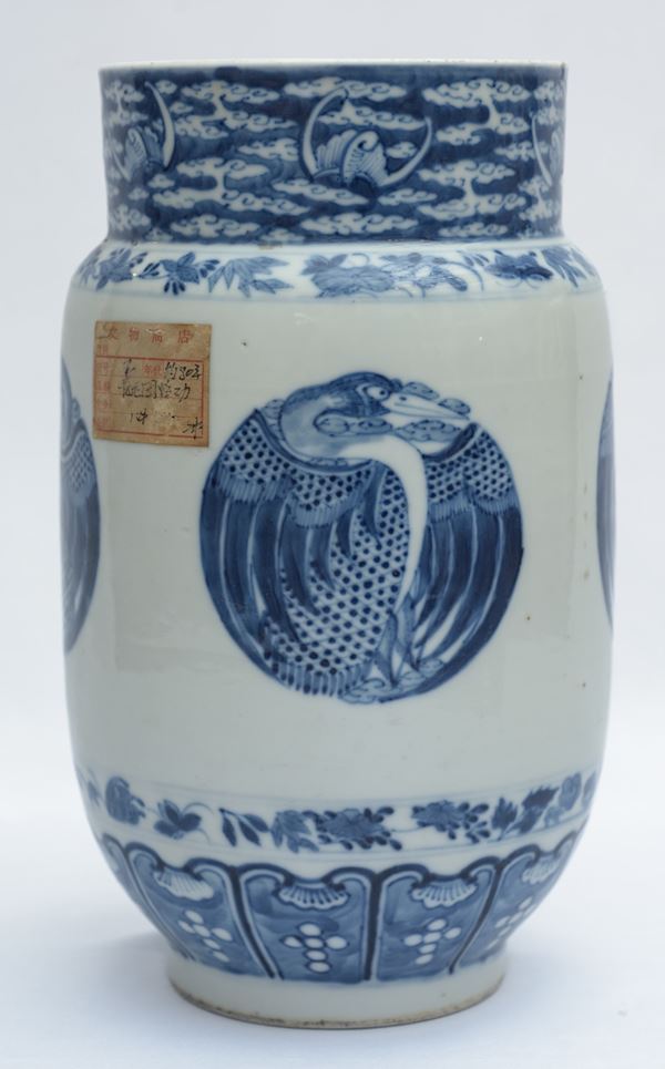Di forma cilindrica, con decorazioni raffiguranti flora e fauna. Dinastia Qing.