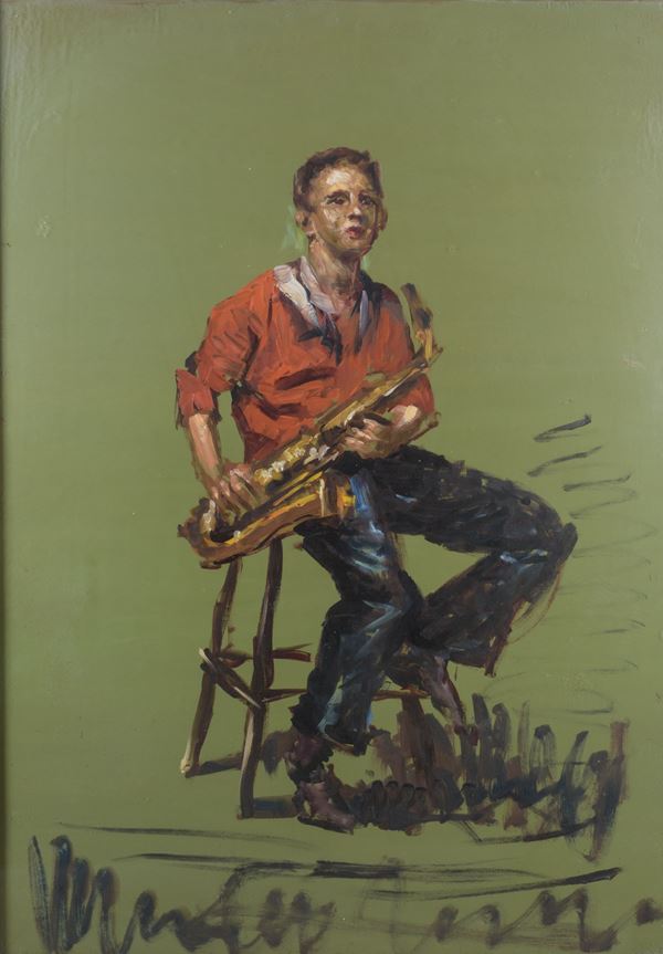 American School of the 20th Century - Four Paintings Depicting Musicians