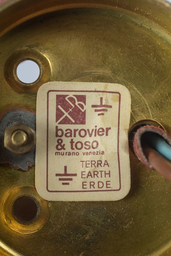 Mounted on metal plate, glass with gold inclusions. Production label on the back.