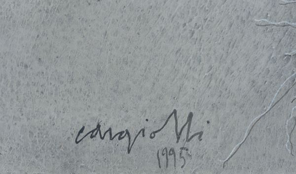 Titled, signed and dated at the bottom. Work presented with artist's authentication on photograph dated 10/03/1999. Framed.