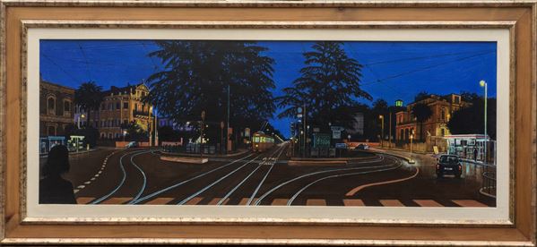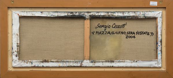 On the back signed, titled and dated: "Sergio Ceccotti 'Piazza Galeno, sera d'estate' 2004". Framed.