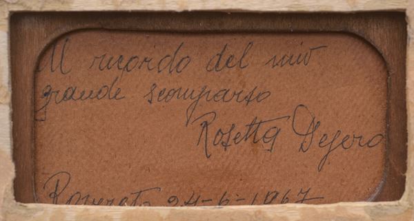 Work signed and dated top right "F. Depero 946". Inscribed on the back by his wife Rosetta Depero: "In memory of my great late Rosetta Depero Rovereto 24-6-1967". Framed.