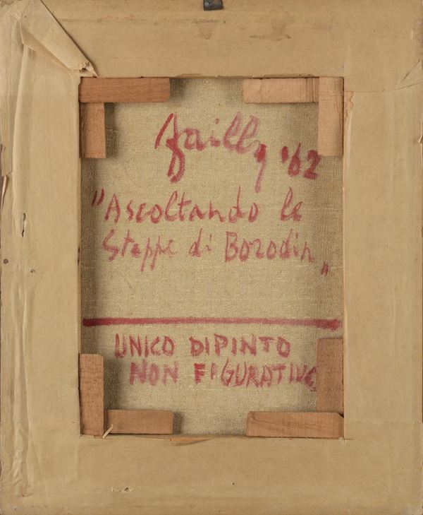 Work signed lower right: "Failla". Inscription on the back: "Failla '62 'Listening to the steppes of Borodin' Unique non-figurative painting". Framed.