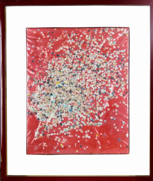 On the back: signed, dated and titled "festa 83 fondo rosso". Work presented with a certificate of authenticity and archiving by the Archivio delle Opere Tano Festa, edited by Anita Festa, dated 11 February 2025; archive no.: B31163/2580. Framed.