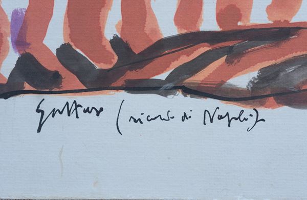 Signed and inscribed lower right: "Guttuso (memory of Naples)". Framed.