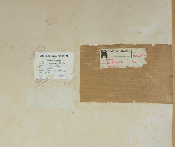 Signed and dated lower right. On the back: label and stamps: Galleria "Il Vertice" Milan; "Galleria Milano". Framed.