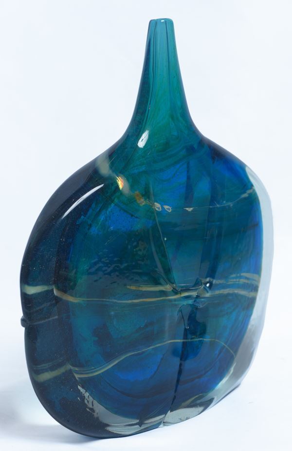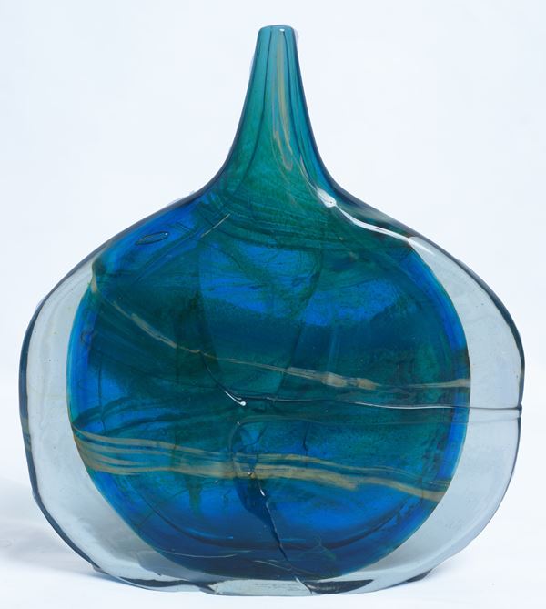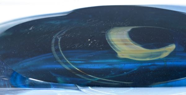 Decorated with clear crystal bands. Signature engraved at the base: "Michael Harris Mdina Glass Malta".