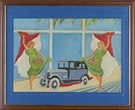 inscriptions on the left. Signature in the center on the right. Stamp of provenance on the back.