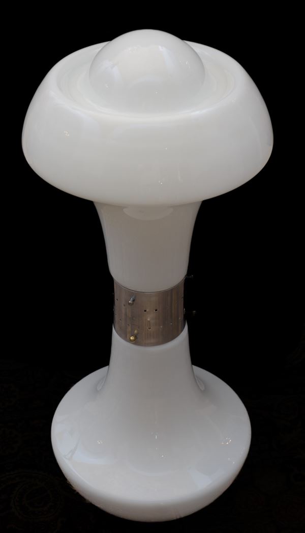 Mazzega production. In milk glass and metal. Three bolts have been replaced; fully functional.