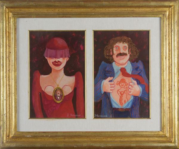 Works signed respectively lower left and lower right: "D. Romano". On the back: signed, dated and titled. Inserted in a single frame.