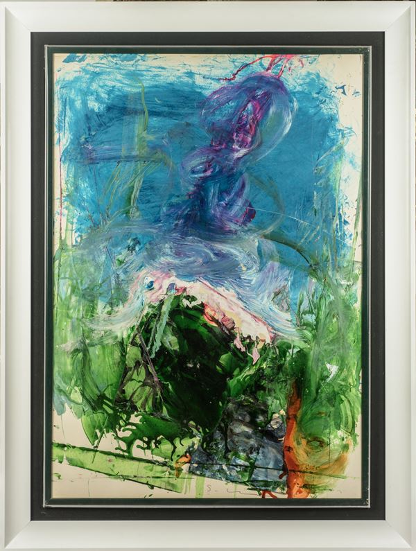 Work signed lower center. Framed. The work is presented with a Certificate of Authenticity from the General Archive of the Work of Mario Schifano with the number 000170409914.