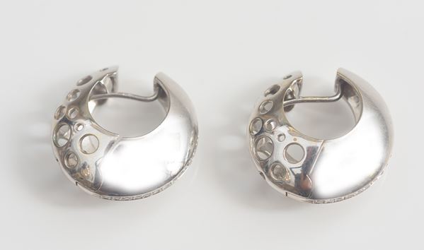 Due orecchini in oro bianco 18kt, Vecchia manifattura