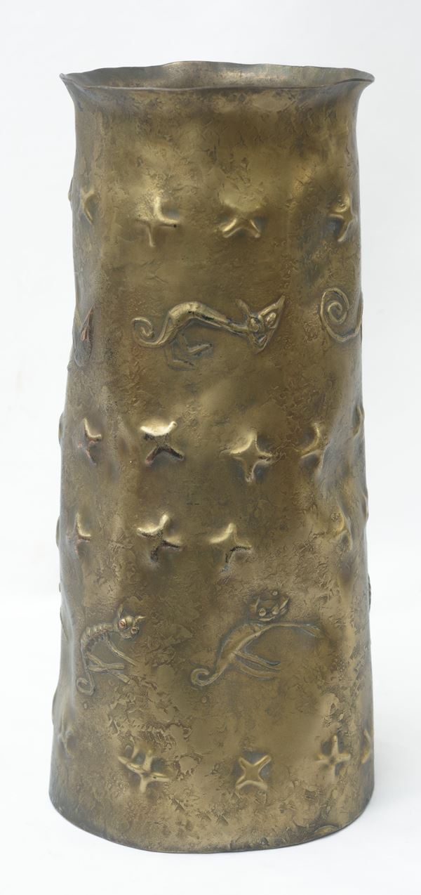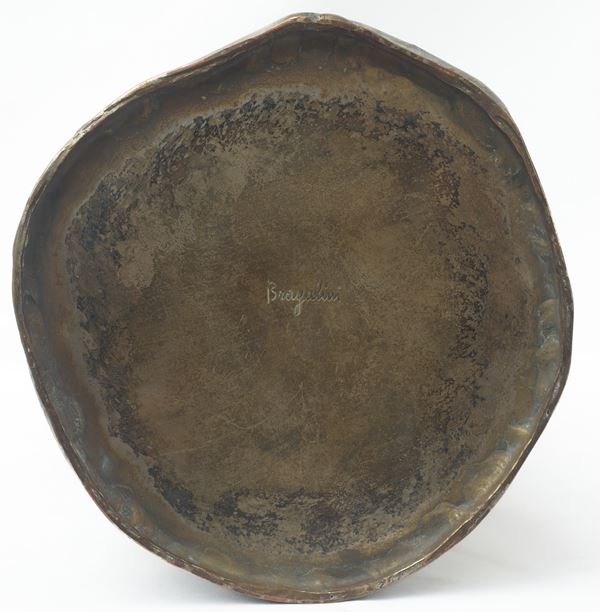 Con decorazioni cesellate e incise. Firmato al retro della base.