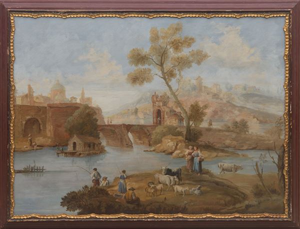Paesaggio con Personaggi, Rovine e Armenti, Scuola Veneta; XVIII secolo
