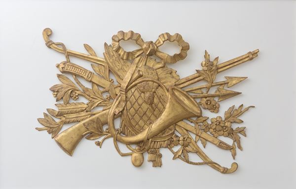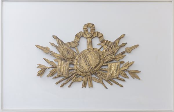 In gilded and carved wood, depicting allegorical motifs. One pair from the Louis XVI period, late 18th century, and one from the 20th century.