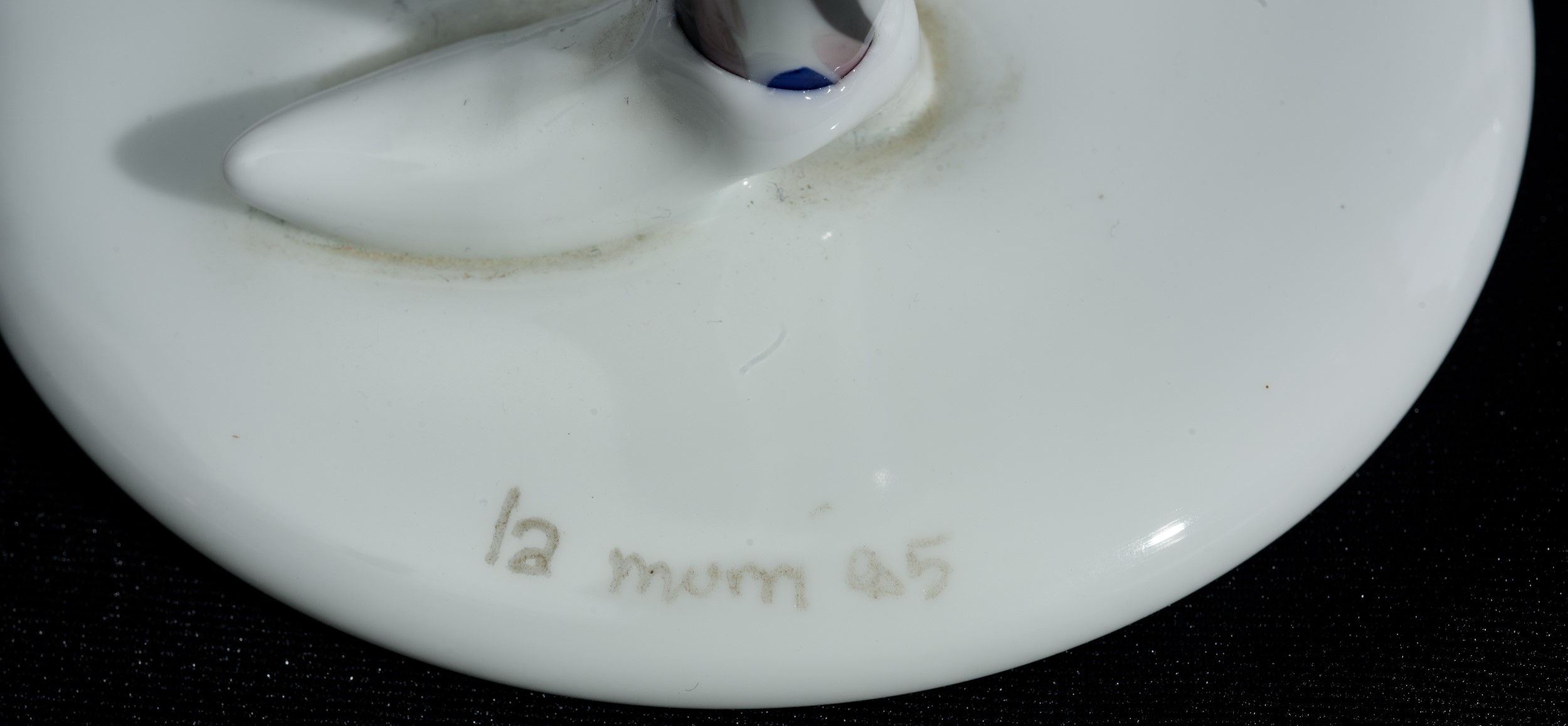 In vetro lattimo, con applicazione di vetro a canne e murrine. Marchio inciso alla base: "La Murrina 95".
