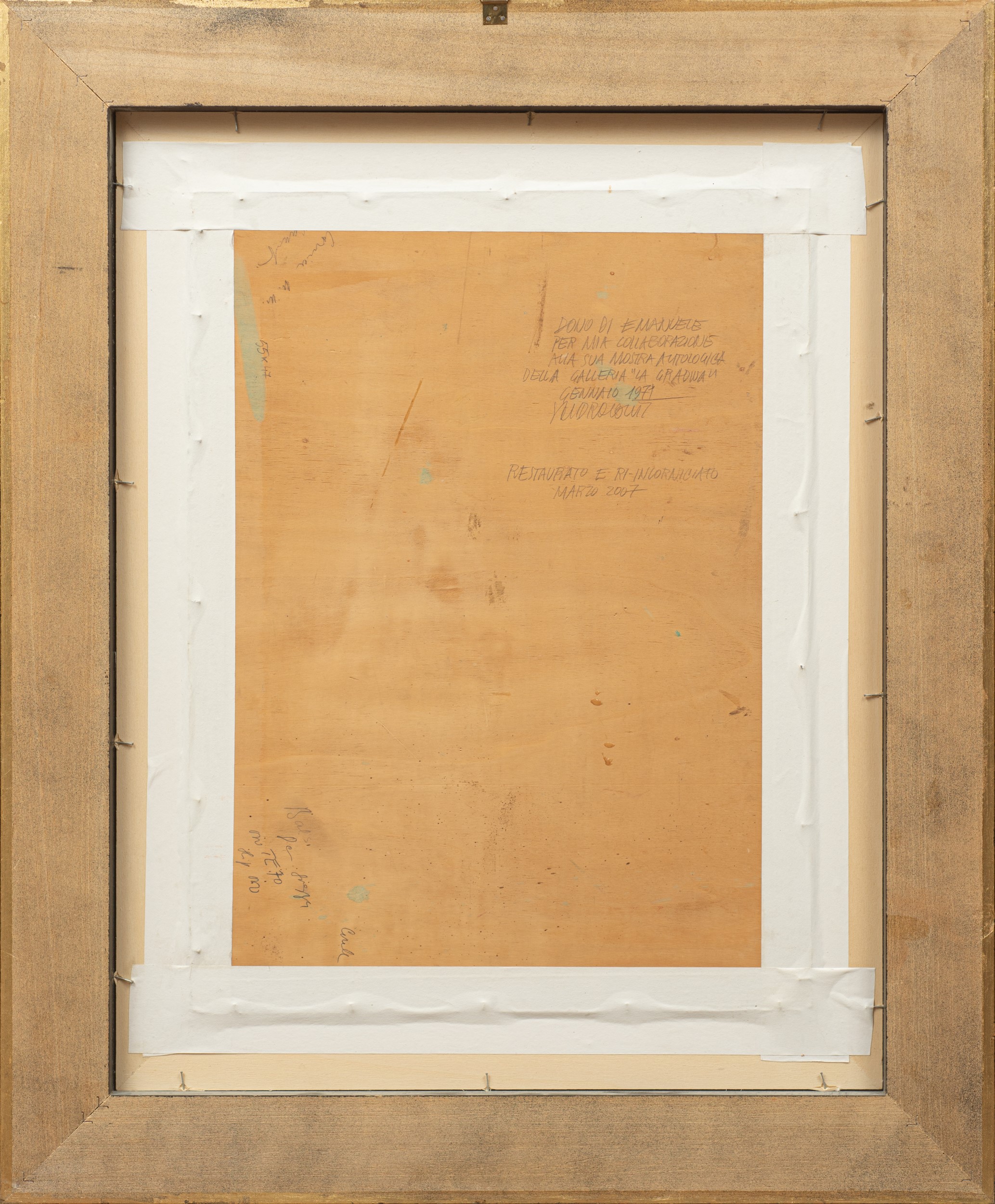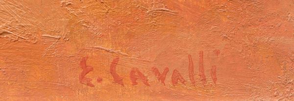 Opera firmata in basso a destra: "E. Cavalli". Al retro iscrizioni. Opera andata in mostra nel 1977, presso la galleria "La Gradiva", come riportato al retro. In cornice