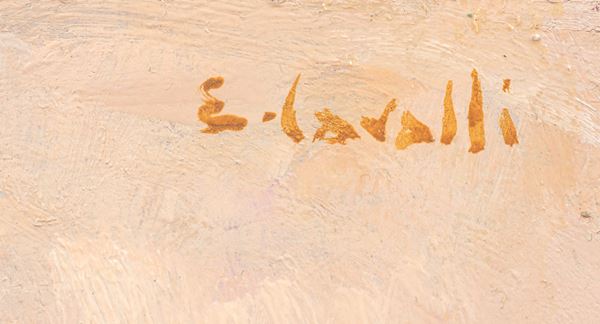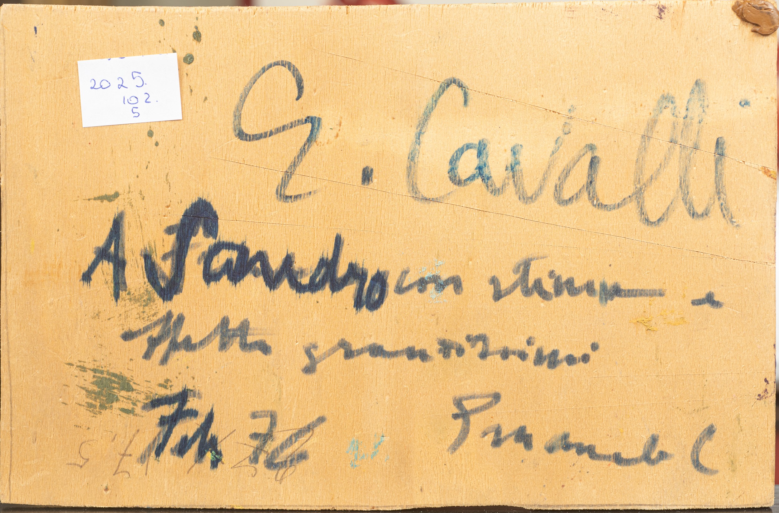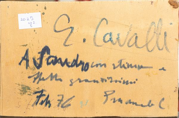Opera firmata in alto a destra: "E. Cavalli". Al retro recante iscrizioni autografe del Maestro: "E. Cavalli A Sandro con stima e affetto grandissimi Febbr 76 Emanuele C.". In cornice.