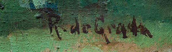 Opera firmata in basso a destra: "R. de Grada". Al retro reca etichetta della mostra "VI Quadriennale Nazionale d'Arte di Roma". In cornice.