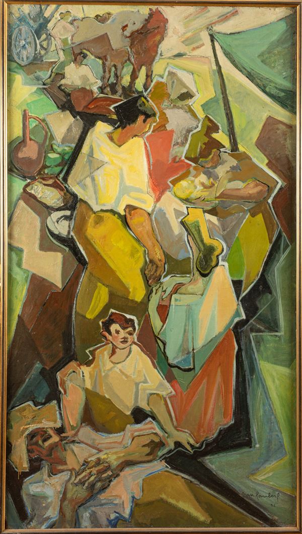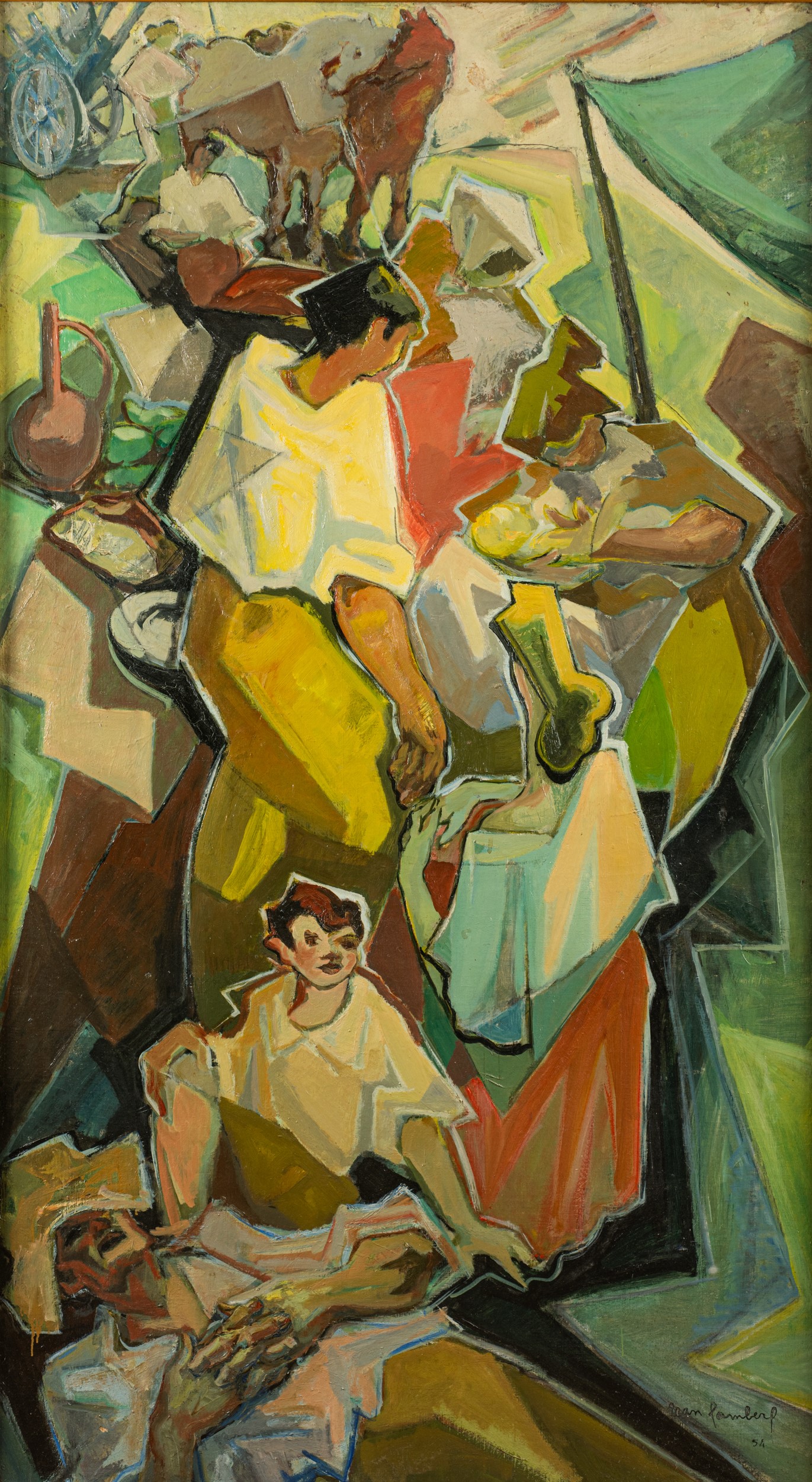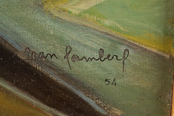 Opera firmata e datata in basso a destra: "Jean lambert 54". Opera esposta al "Salon des Independants" del 1954. Etichette al retro. In cornice.