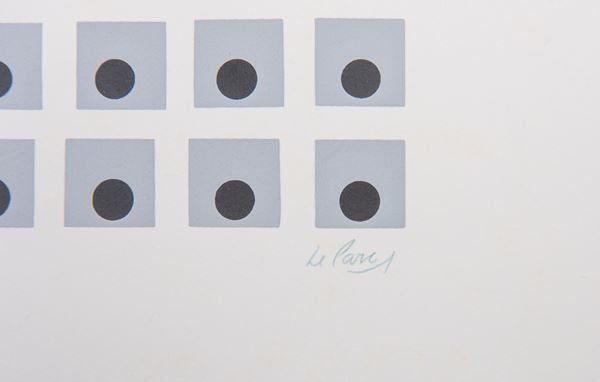 Es. n. 114/150. Dalla cartella stampata in occasione della mostra "Groupe de Recherche d'Art Visuel". Edizione per Sam Villa, 1975. Numerata in basso a sinistra; firmata in basso a destra.