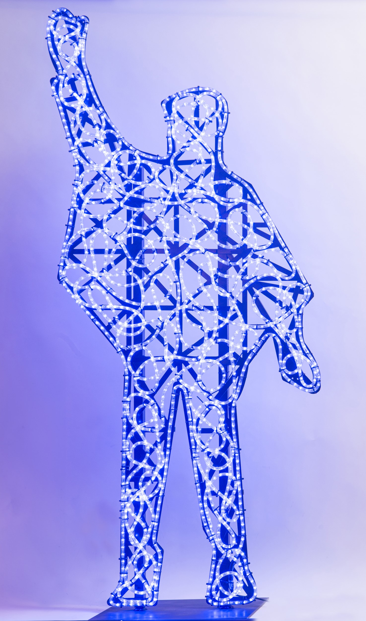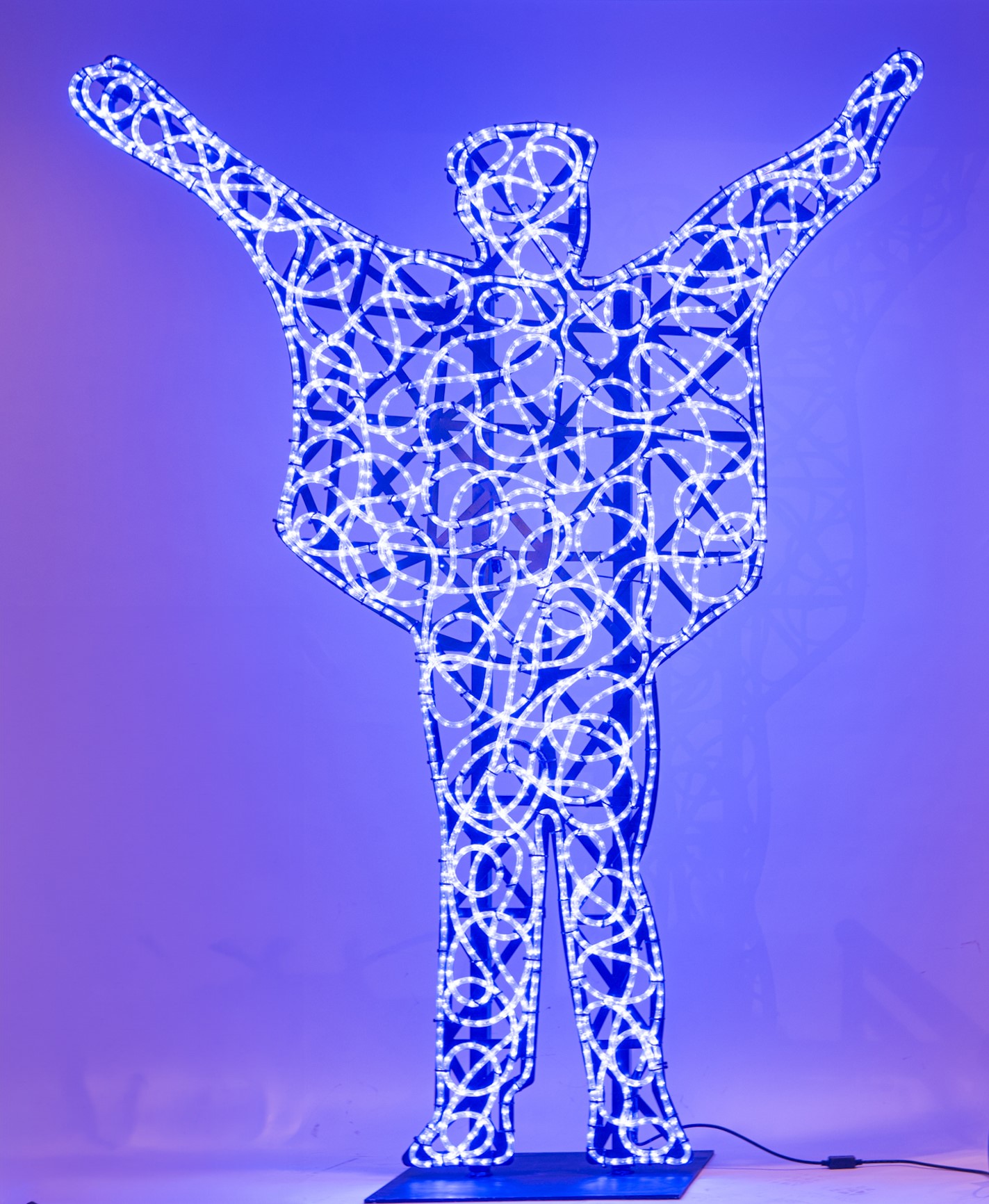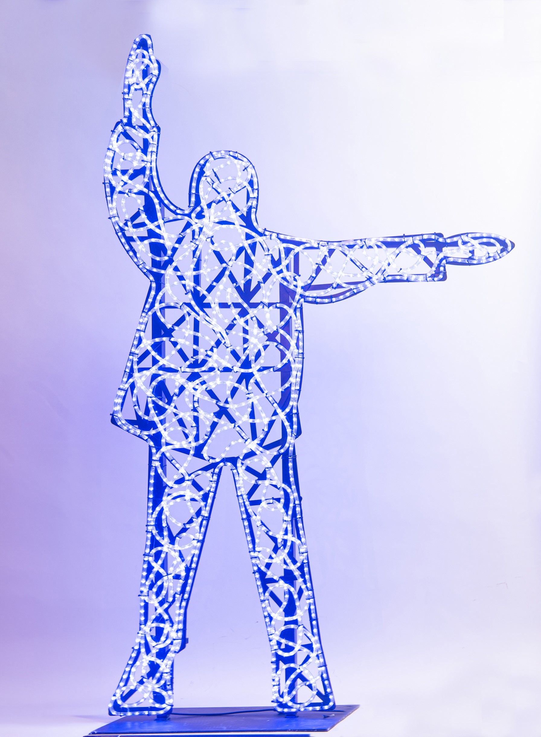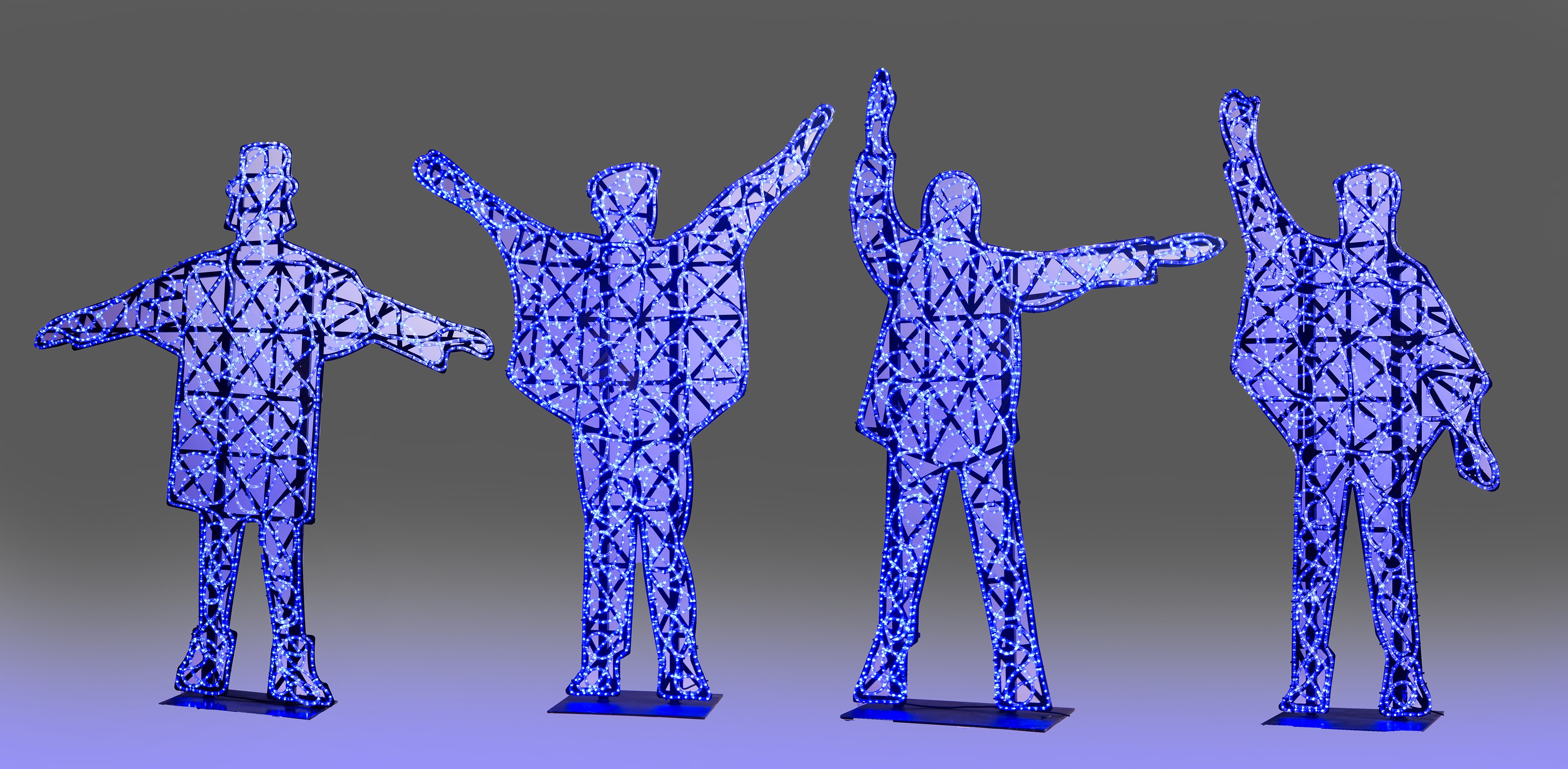 Istallazione luminosa composta da quattro sagome con luci a led raffiguranti i Beatles come da copertina del disco Help.