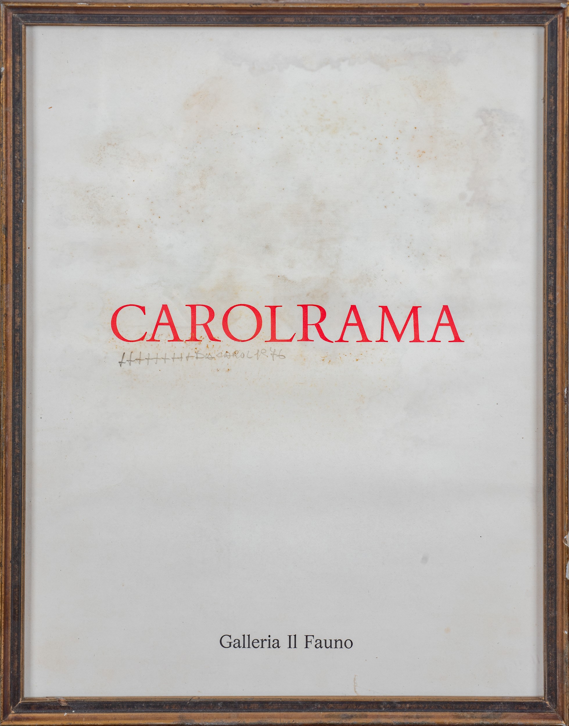 Manifesto della mostra "Carol Rama", Galleria il Fauno, Roma. Iscrizione autografa: "+++++++++ da carol 1976". In cornice