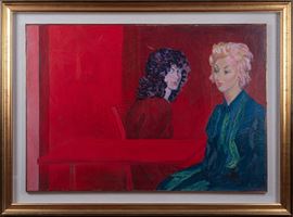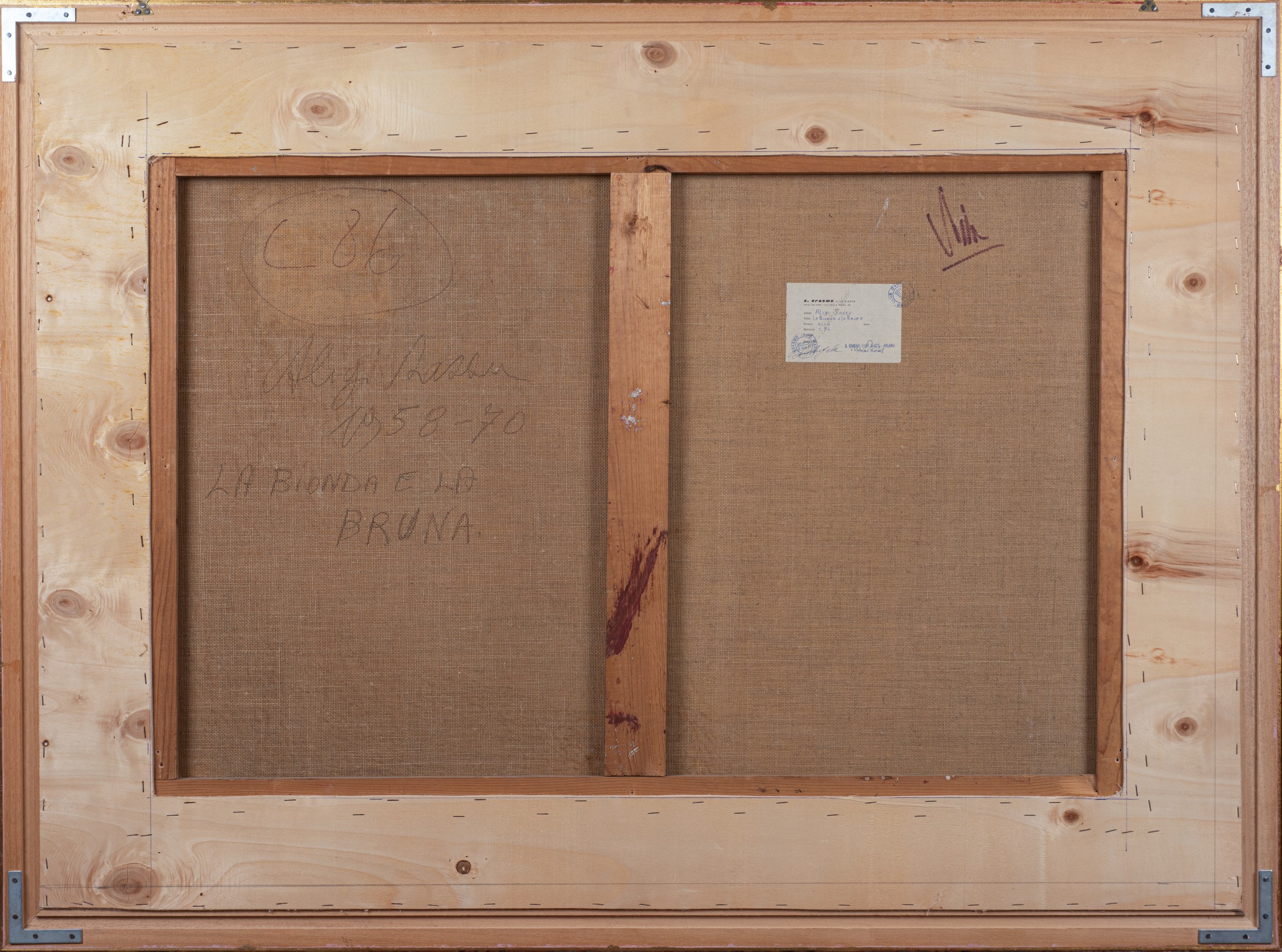Opera firmato in basso a destra: "SASSU". Al retro, etichetta di provenienza: Sant'Erasmo Club d'Arte, Milano. Iscrizione al retro: "Aligi Sassu 1958 - 70, La bionda e la bruna". Entro cornice