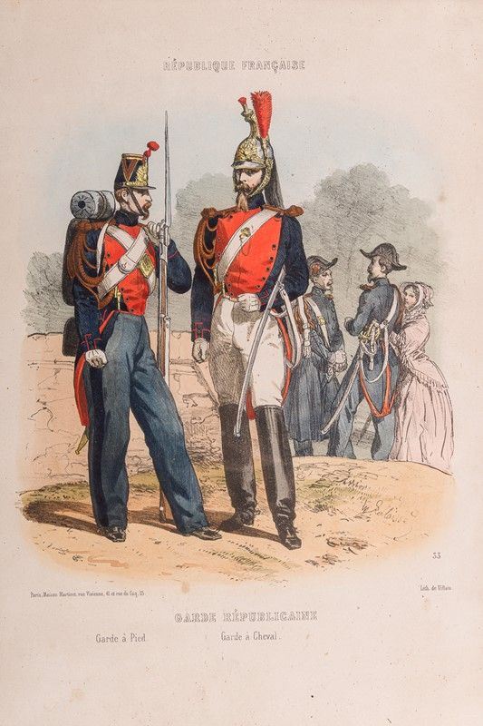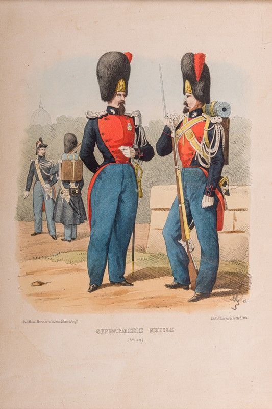 Pair of engravings depicting republican guard and mobile gendarmerie, France, mid-19th century