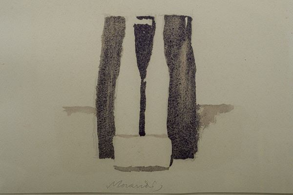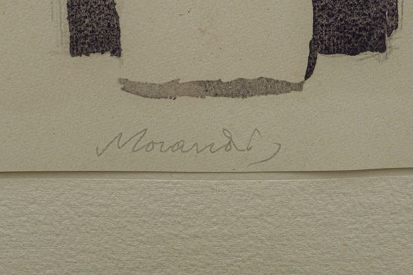 watercolor print, taken from the series edited by Valerio Zurlini, "50 watercolors by Giorgio Morandi", Ilte publisher, Turin 1973, signature printed in the lower center, stamped on the reverse "Stampa Ilte, Turin", framed