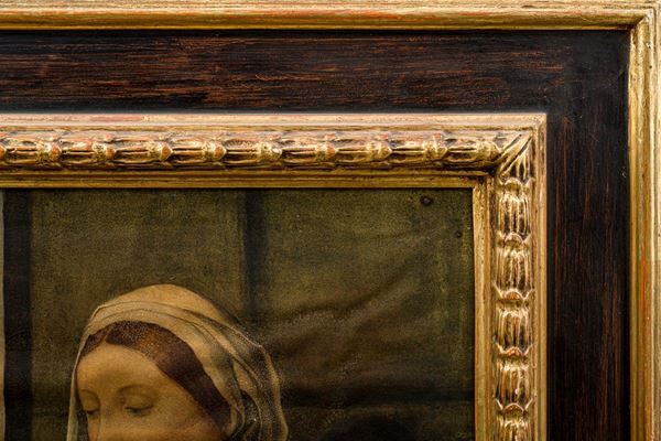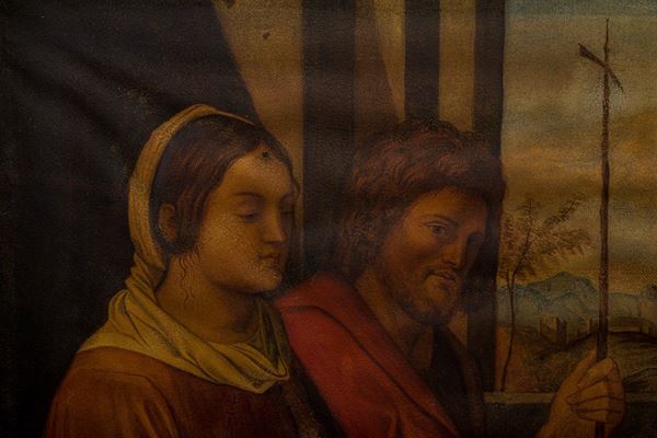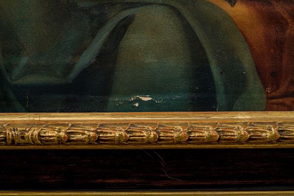 The commonality of cultural intent with the Venetian and Giorgione area is evident, despite the fact that our painter belongs to a subsequent historical period and the resumption of stylistic elements does not succeed in completely emancipating himself from the academic exercise of style. Framed.