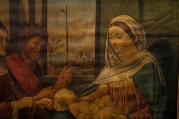 The painting, depicting the Madonna while admiring the little son in the presence of saints Catherine of Alexandria and John the Baptist already an adult, was made by the artist around 1505-1510.