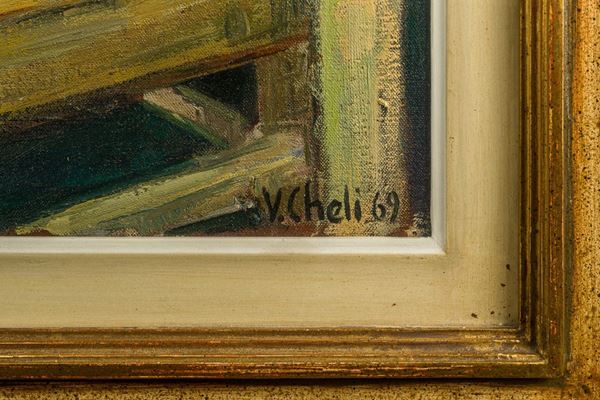 signed and dated lower right, on the reverse title and signature with biographical note of the author, framed