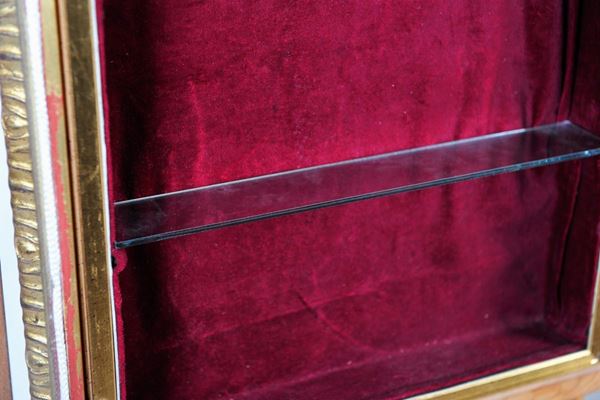 In gilded wood and crystal, flag opening. With 2 glass shelves.