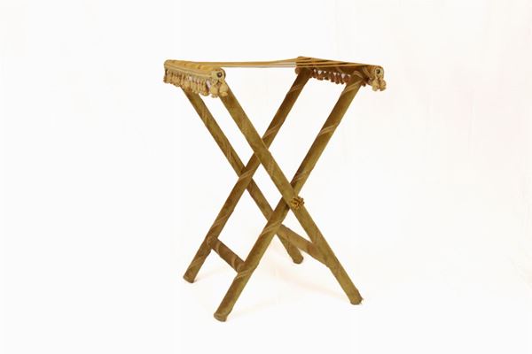 in black polychrome metal and gold decorations with geometric and vegetable motifs with support stand in velvet.