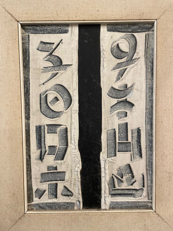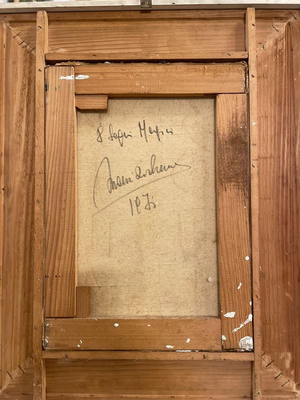 dipinto a tecnica mista su tela, reca firma non decifrabile sul verso e datata 1971, entro cornice.
