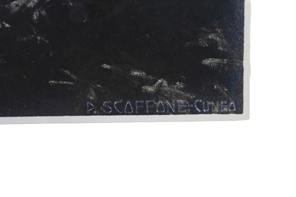 Riproduzione fotografica in bianco e nero, firmato con timbro incusso nella carta in basso a destra al verso, A. Scoffone Cuneo