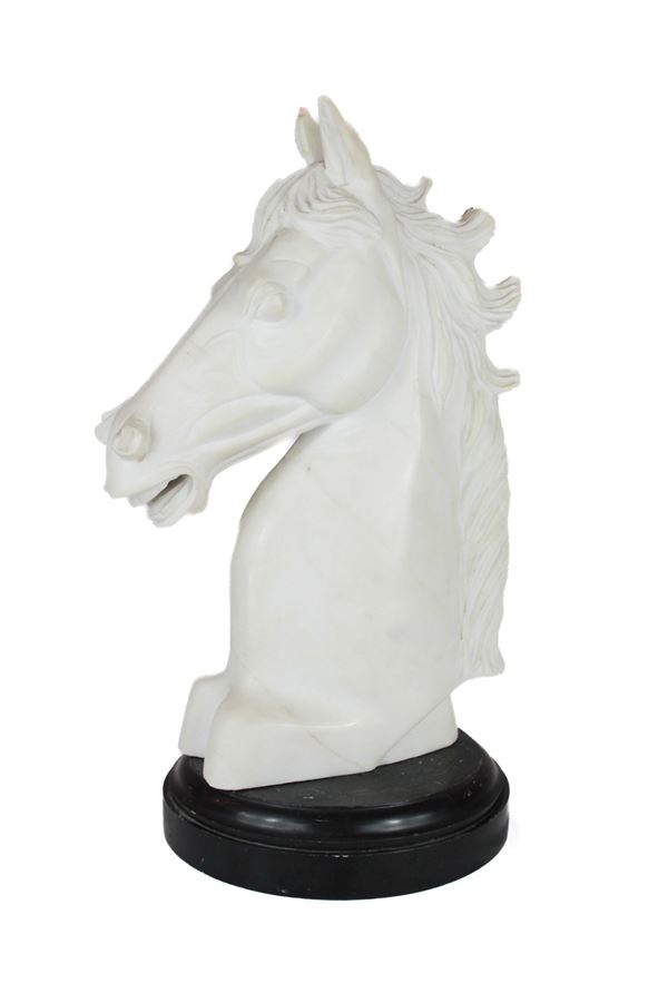 Scultura in volume in marmo bianco statuario, su base circolare in marmo nero del Belgio. Piccolissime mancanze in corrispondenza della punta delle orecchie.