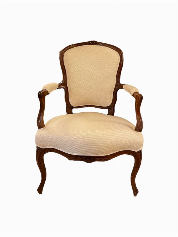 In legno di noce, con seduta e schienali imbottiti. Di linea Luigi XV.
