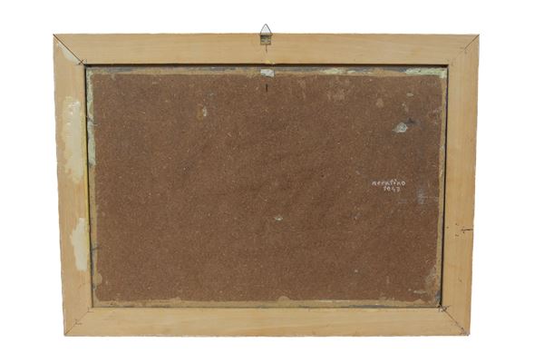 dipinto ad olio su faesite, in cornice, firmato al verso in basso a destra