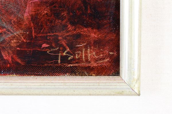 dipinto a tecnica mista su tela, entro cornice, firmato in basso a destra e datato sul retro 1991.