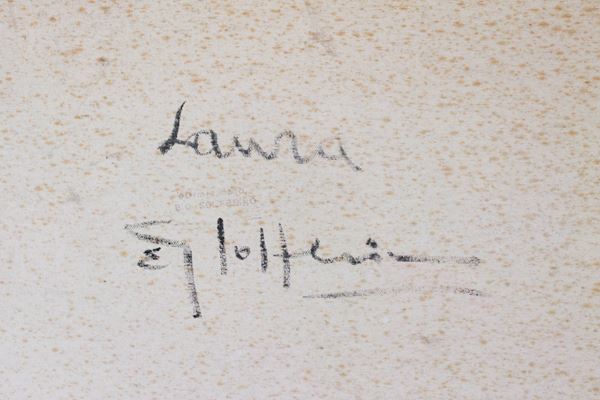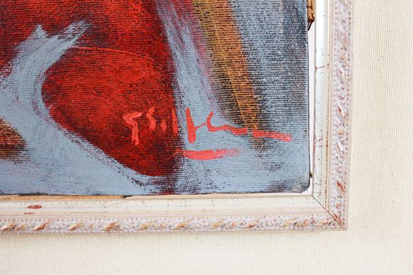 dipinto a tecnica mista su tela, firmato in basso a destra, entro cornice. Piccola caduta di colore in alto a destra.