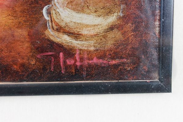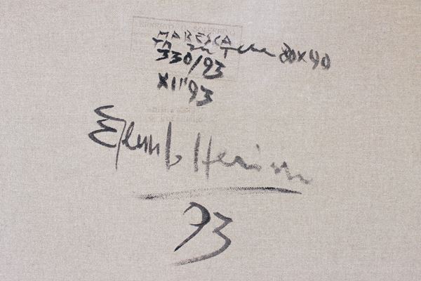 tecnica mista su tela, entro cornice, firmato in basso a destra, con autentica del pittore sul retro, datato 1993.