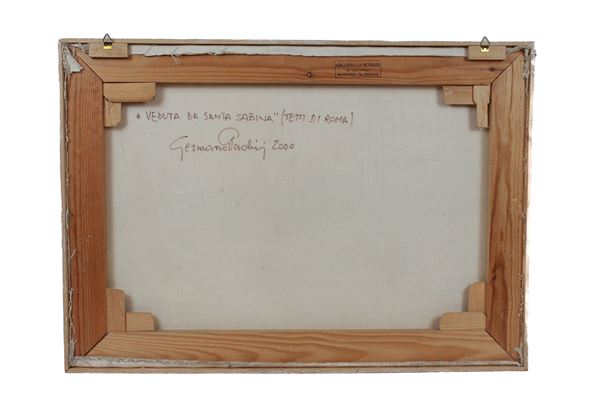dipinto ad acrilico su tela in cornice, firmato al fronte in basso a destra, titolato e firmato per esteso a tergo con data 2000.