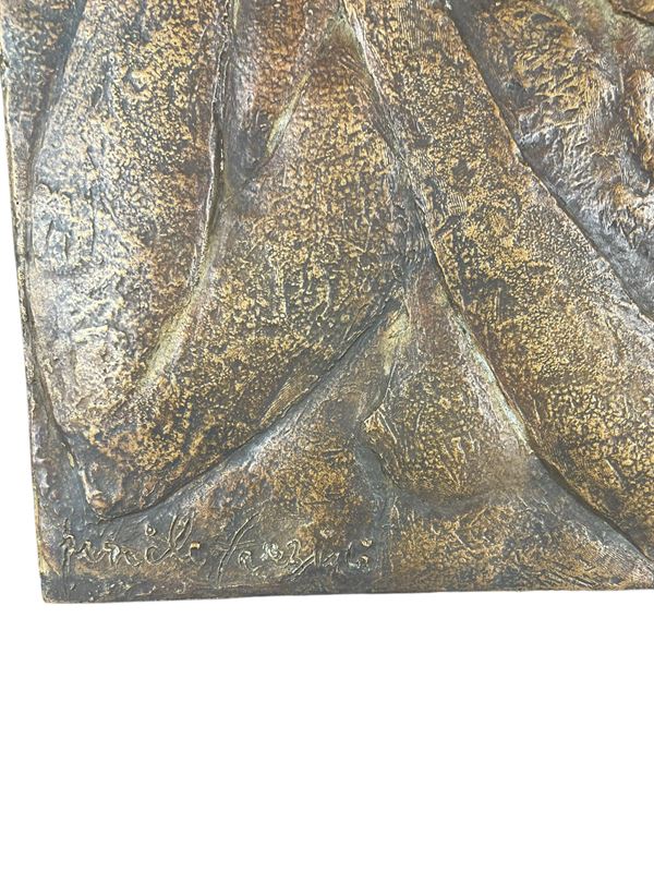 Scultura in bassorilievo in bronzo, firmato in basso a sinistra. In incornice.