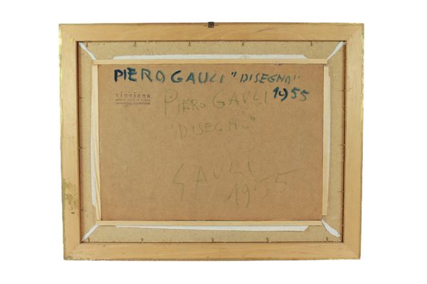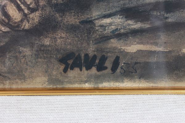 disegno a tempera su carta applicata su compensato, firmato in basso a destra, entro cornice, reca timbro sul retro 'Galleria d'arte Vinciana'