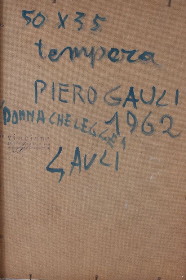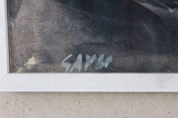 dipinto a tempera su carta applicata su compensato, firmato in basso a sinistra, firmato, intitolato e datato 1962 sul retro, entro cornice