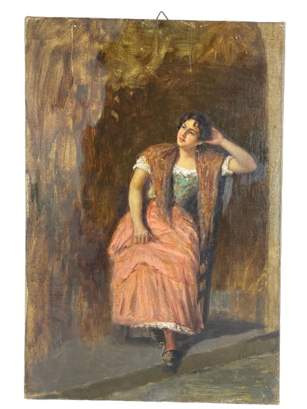 Ritratto di paesana, scuola napoletana fine XIX secolo