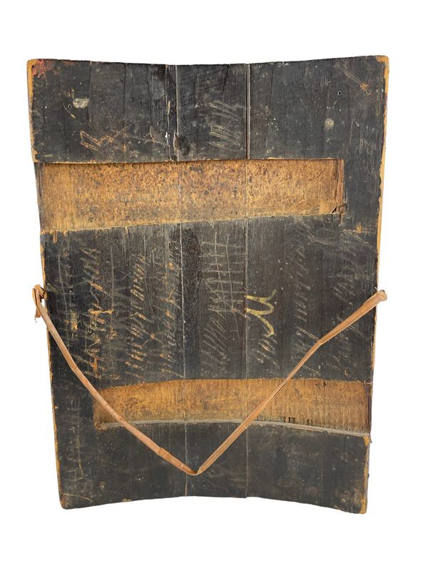 Icona balcanica con Santo Benedicente, Cristo e Madonna, su tavola.