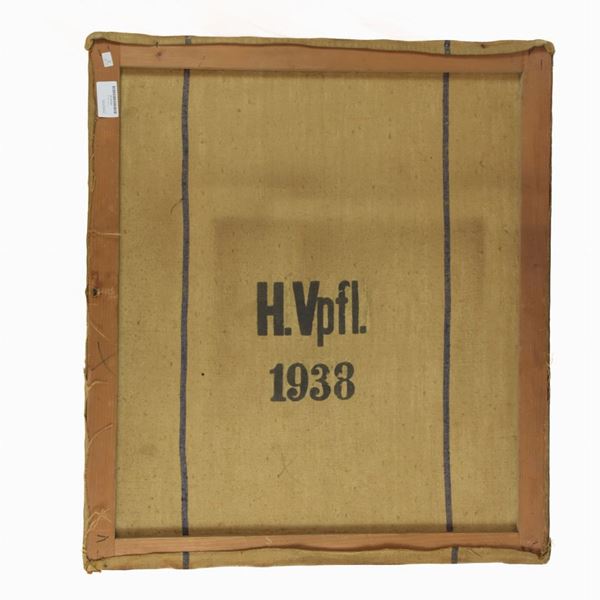 Firma cancellata. Dipinto su tela di iuta contrassegnata come "H.Vpfl.1938".